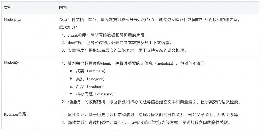 示例1:对一篇文档按照结构切分,提取文档、段落及细分Chunk,解析后挖掘核心问题、摘要、因素等特征,并以文本和向量的方式存储到索引中,同时构建Chunk之间的关系,维护一张Chunk图谱。