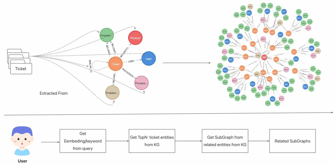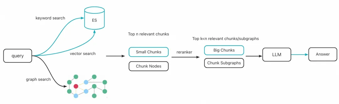 - 图检索:对关键节点进行向量和关键词检索,选择topN 个节点的子图信息进行返回。