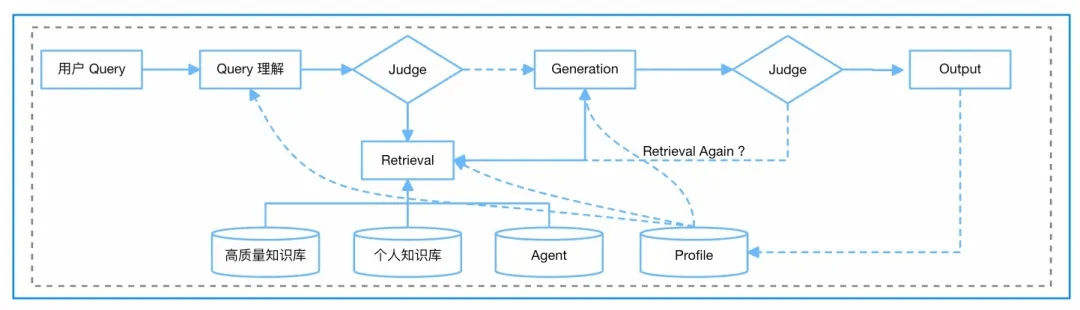 - 检索策略:增加文本异构检索能力和构建”混合语义+向量+图谱”三位一体的混合检索架构,实现不同源数据的协同召回;并且引入迭代式检索,提升复杂场景下的准确性。